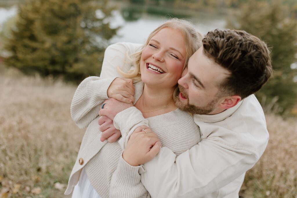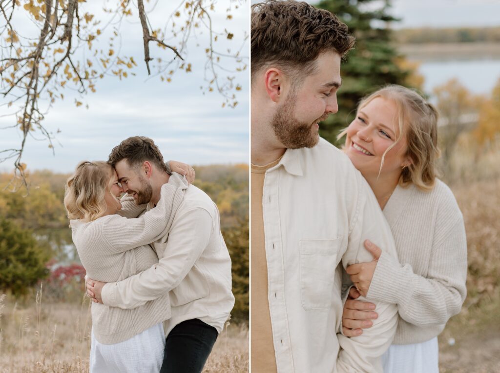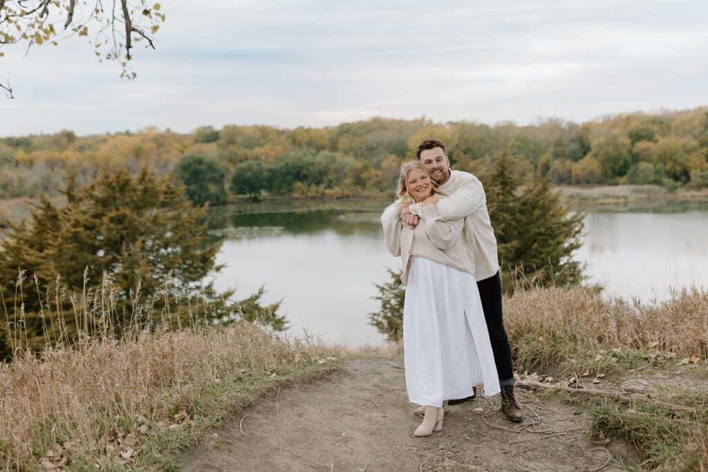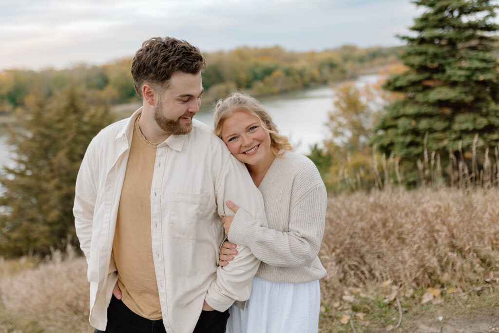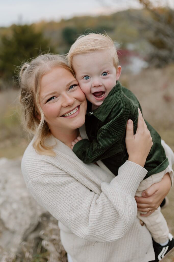 For this session, we met at one of our favorite locations: Oakhurst Forest Preserve in Aurora. It’s a go-to spot for many of my clients looking for Aurora family photos because the preserve offers open fields, tall grass, a lake with bridges, and peaceful water views from the hilltop. Even on a chilly, cloudy fall day, we had perfect light and earthy tones that made the photos pop. On this day, the cooler air encouraged extra snuggles—which is always a win.