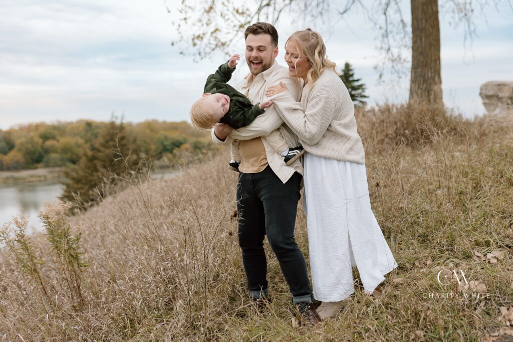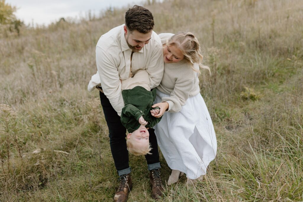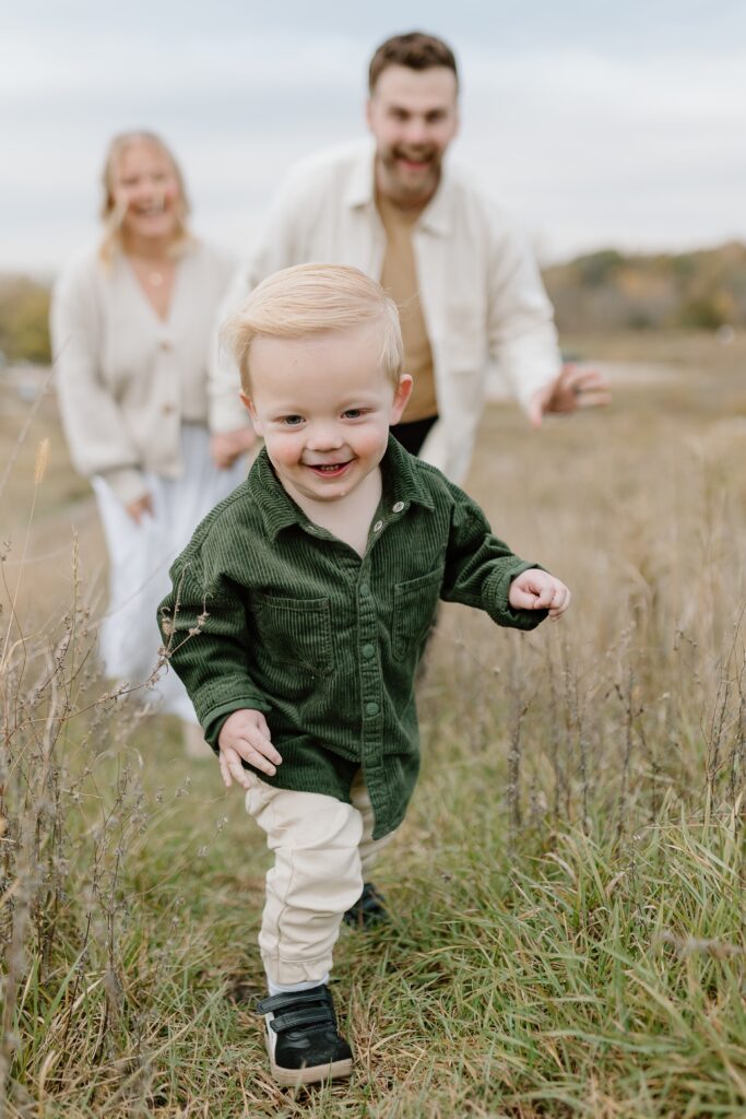 Once he had space to explore and take in his surroundings, his personality came alive. Kayleigh and her husband followed his lead, scooping him up, chasing him through the grass, and sharing sweet little moments that weren’t planned—but ended up being some of the best photos of the day. These organic interactions often tell the truest story of a family!