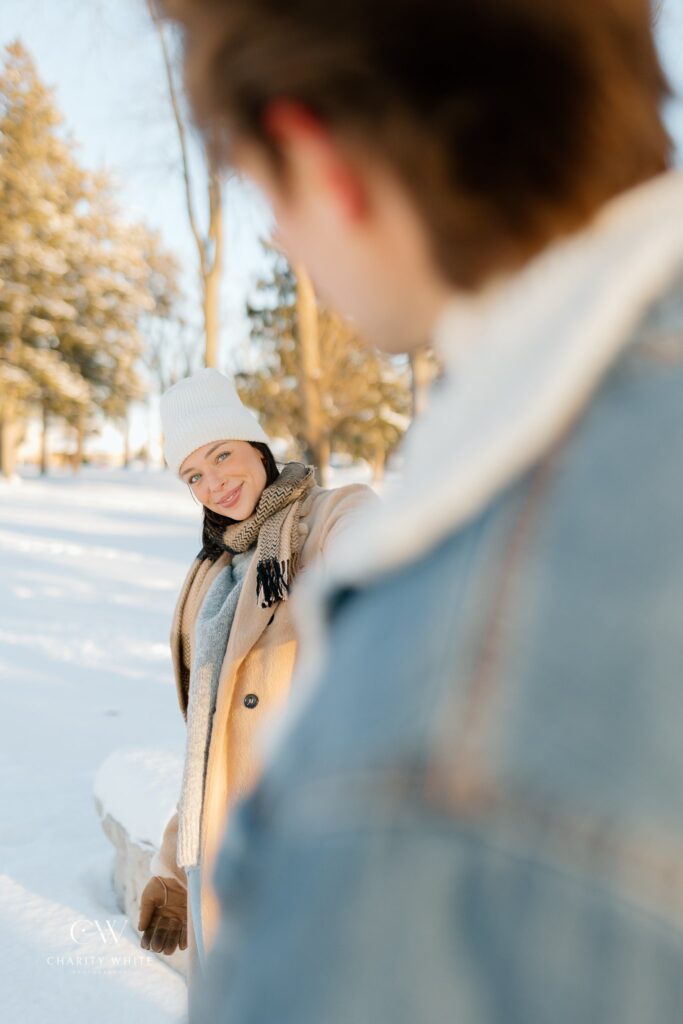 So, it’s no secret that I am the summery, nature photography girl. My portfolio is filled with people set in gorgeous, green locations all around the Chicago suburbs. I come alive in the sunshine and I get “SAD” (seasonal affective disorder) in the winter. However, I’ve been inspired lately to step out and embrace the winter more – and that means with my clients, too. That’s why I was SO excited to style this snowy couples photoshoot this December.