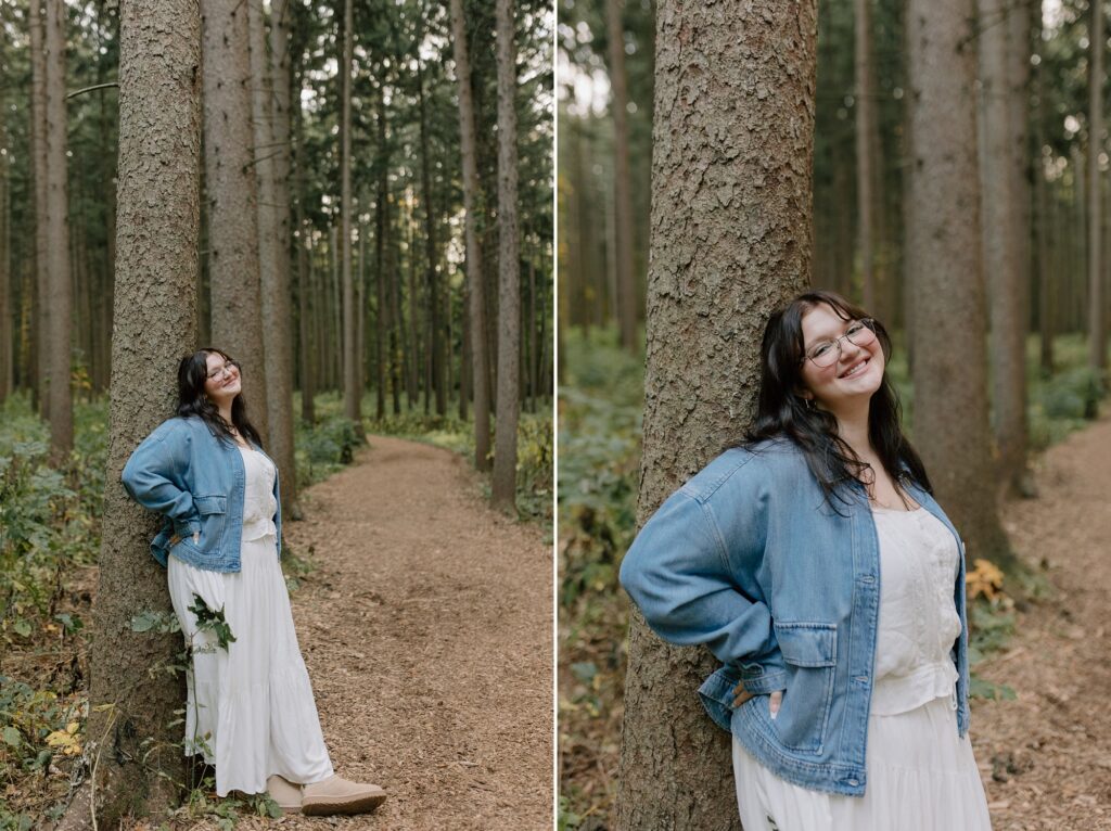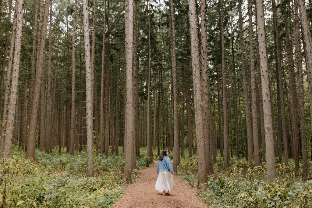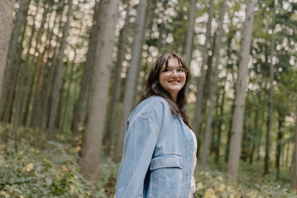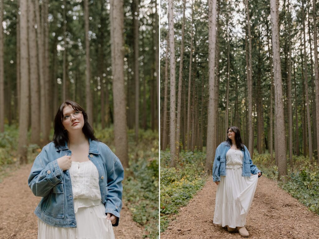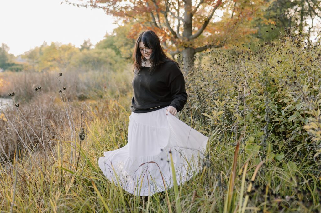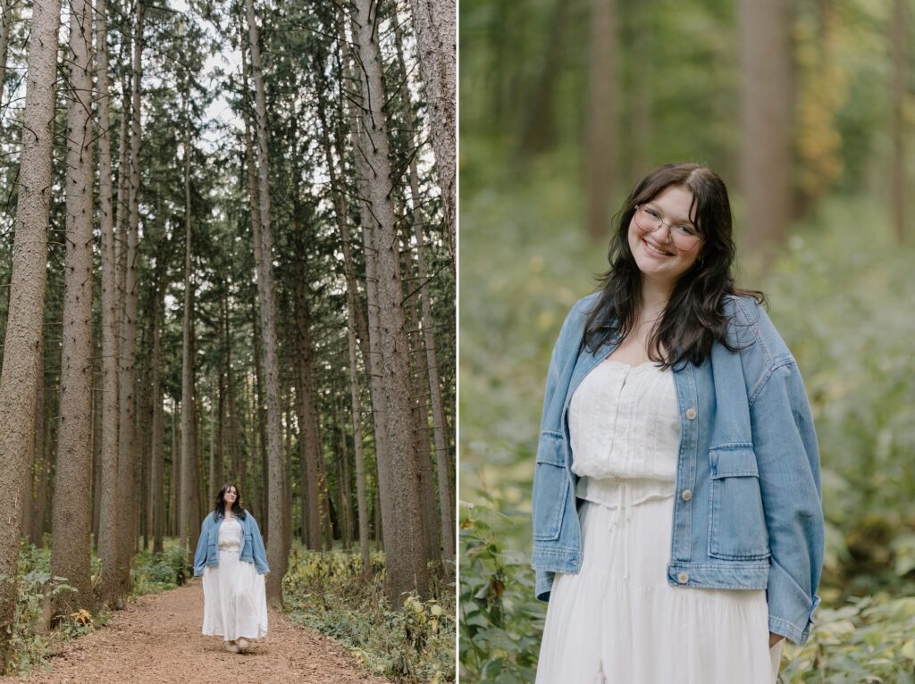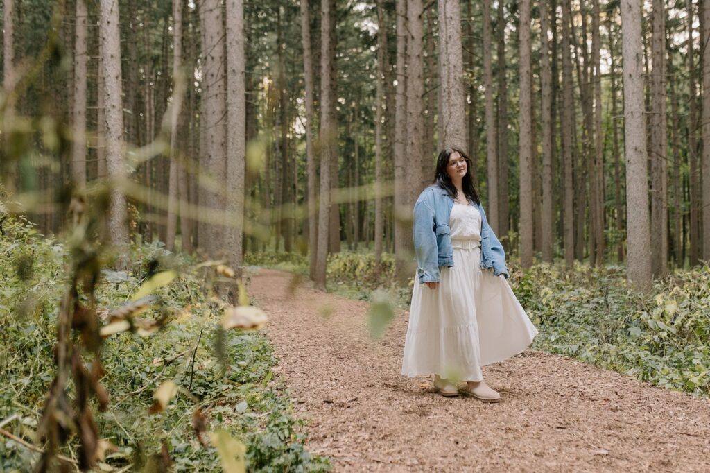 Excuse me while I squeeaal over these, because Cassy is simply glowing in her whimsy, gold-hour senior photos at Morton Arboretum. I’ve been dreaming of this tree grove for years now, waiting for the perfect person to place there. When Cassy said she was hoping for senior photos with vibrant colors and a nature-filled forest vibe, I knew this would be the spot for her.